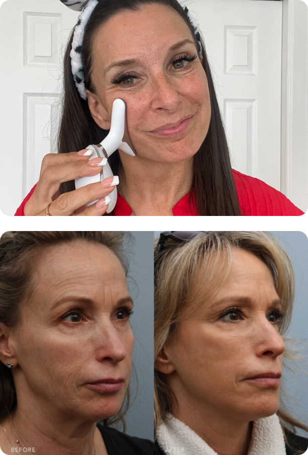 "I've been using RenewaLift for the past few months and I'm already seeing a significant reduction in fine lines and wrinkles. I love the convenience of doing it at home and the fact that it's pain-free. I hardly wear makeup anymore!"