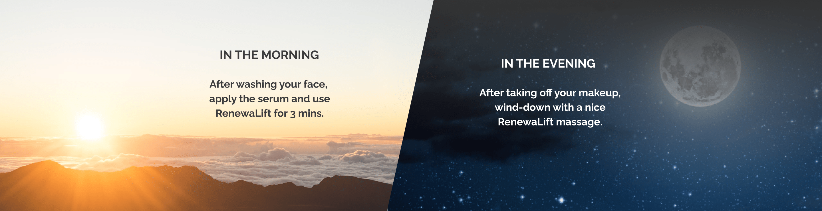 For best facial sculpting effects, use RenewaLift daily for 5 minutes a day. Expect to see results within the first 7 days, with astonishing results after 21-30 days of regular use.
